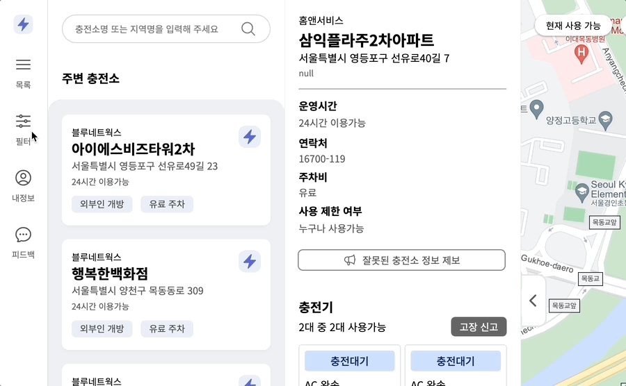 그래서 사용자가 불필요한 동작을 하지 않도록 완속 충전기만 있거나 급속 충전기만 있는 충전소의 경우 버튼 자체를 삭제했다.